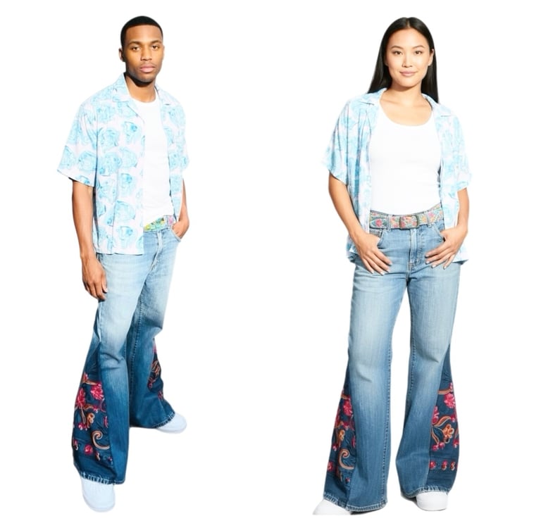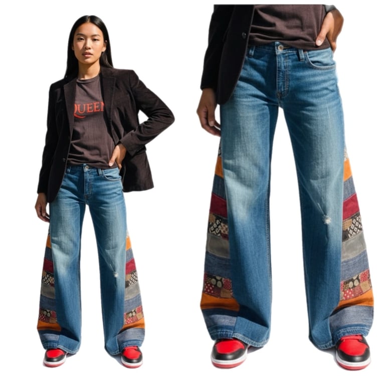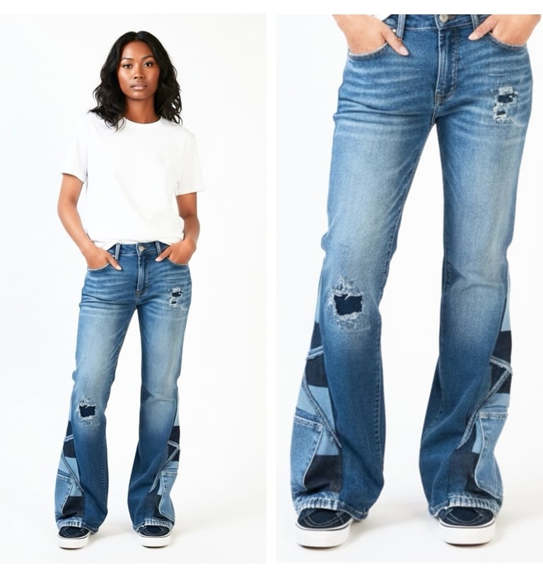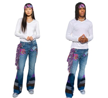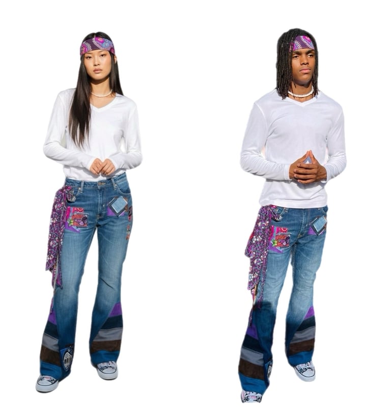 Clothing that truly reflect your shine, stylish, and free-spirited very versatile flare denim jeans blends Afropunk style with a original one of a kind contemporary flair.