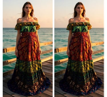 Curated collection of bold prints, flowing fabrics, and edgy designs celebrating Black excellence and Bohemian spirit. Perfect for free-spirited everyday wear or cultural events.